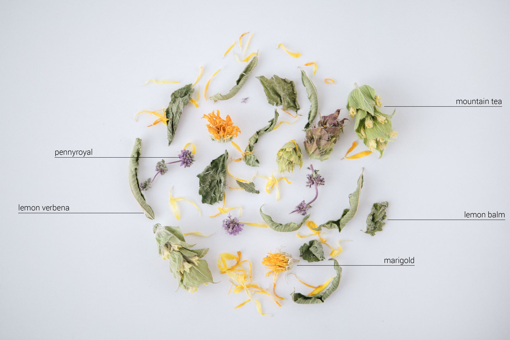 - Mischung: Griechischer Bergtee, Ringelblume, Zitronenverbene, Zitronenmelisse, Poleiminze