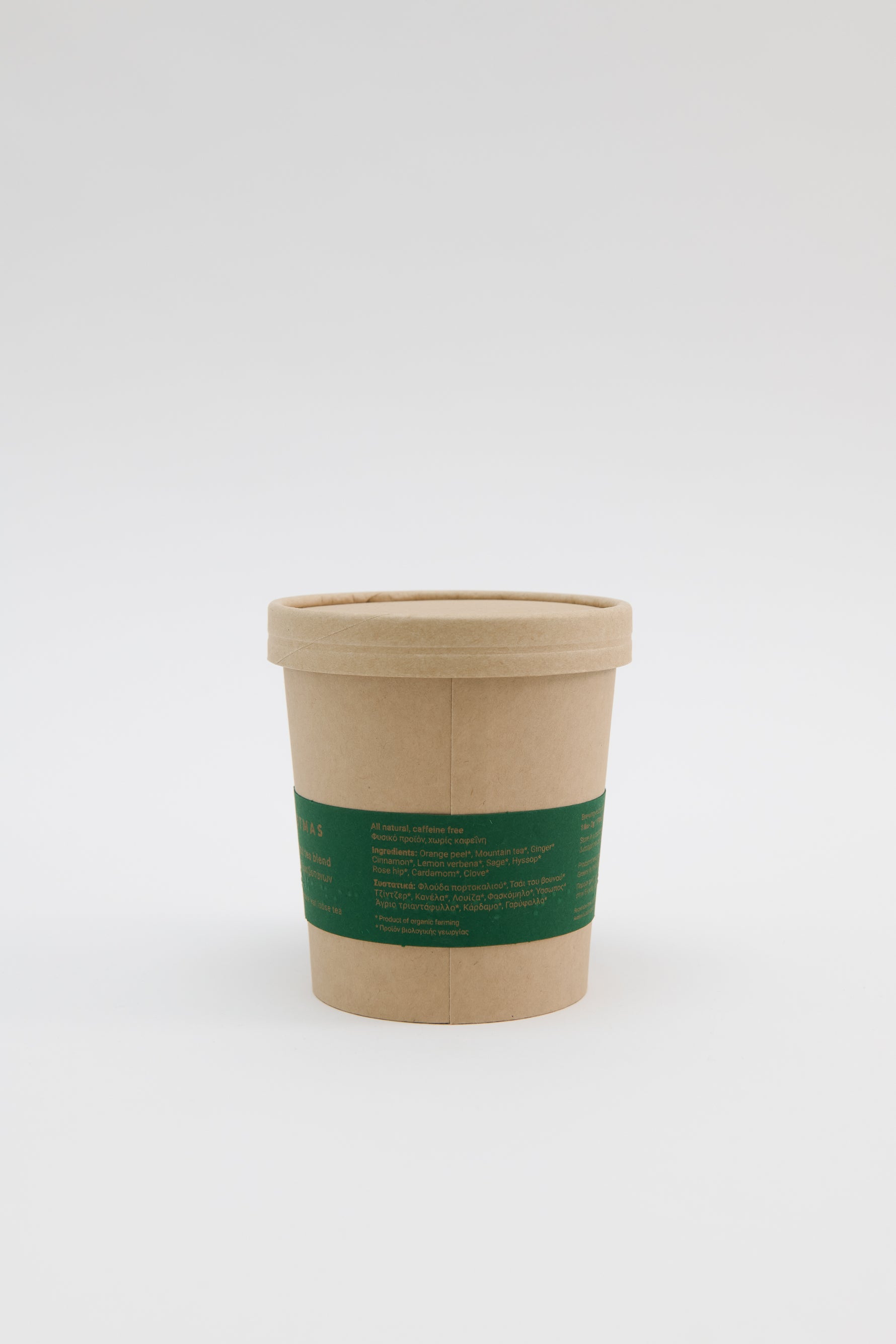 - Mischung: Orangenschalen, Griechischer Bergtee, Ingwer, Zimt, Zitronenverbene, Salbei, Ysop, Hagebutte, Kardamom, Gewürznelke