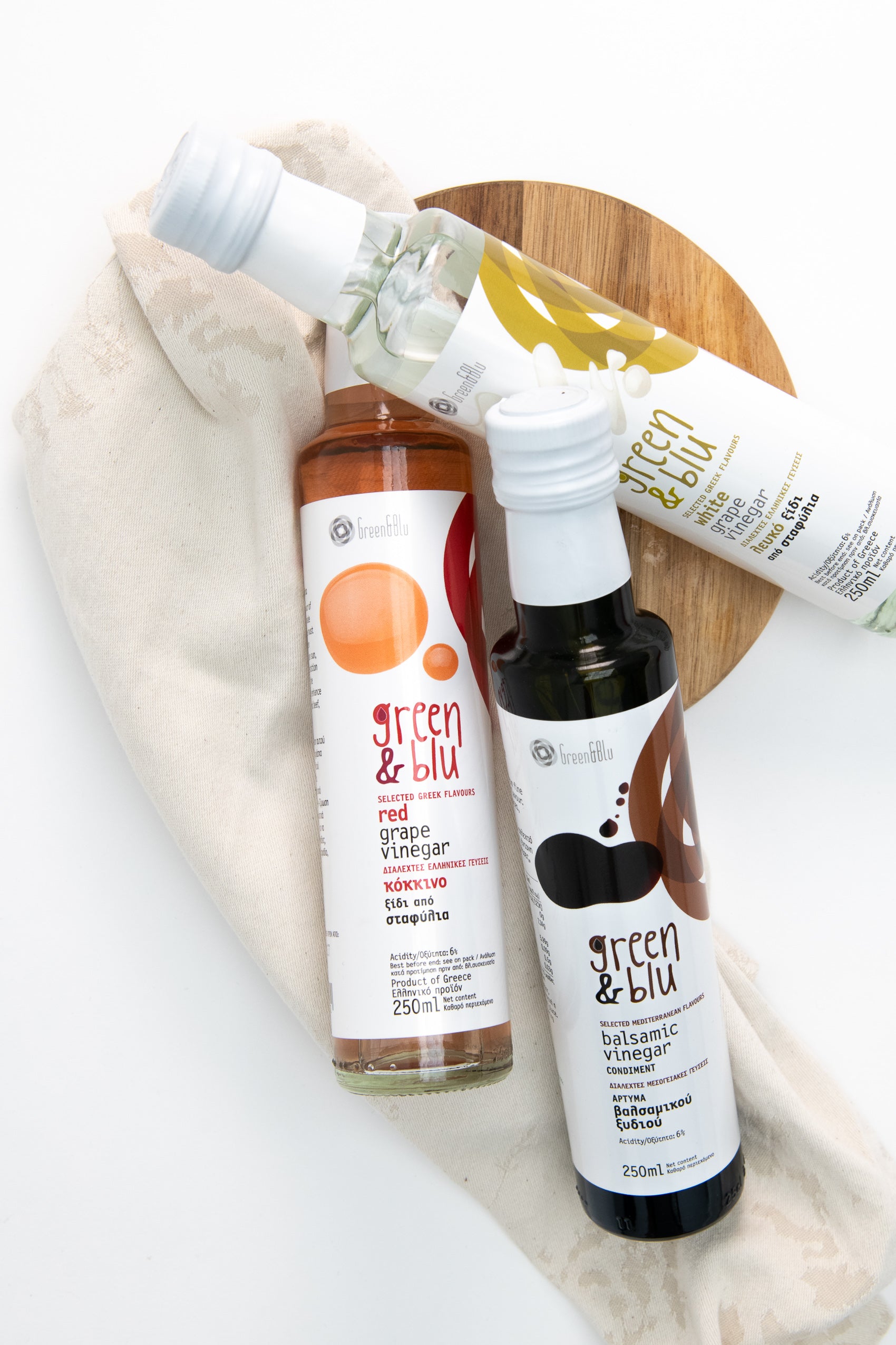 Der natürliche Weißweinessig von Green & Blu aus Messinia, Peloponnes – fein, naturbelassen und aus voll ausgereiften weißen Trauben hergestellt