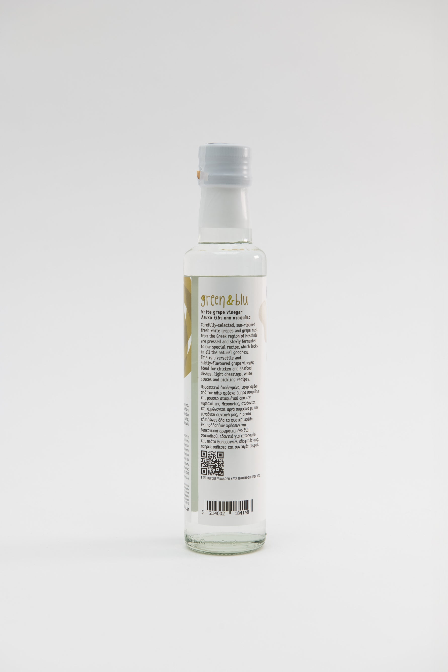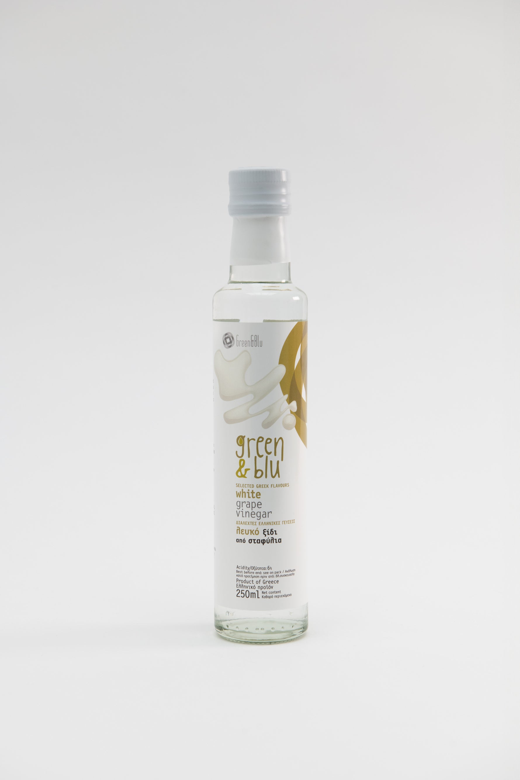 Einzelpreis / proDer natürliche Weißweinessig von Green & Blu aus Messinia, Peloponnes – fein, naturbelassen und aus voll ausgereiften weißen Trauben hergestellt