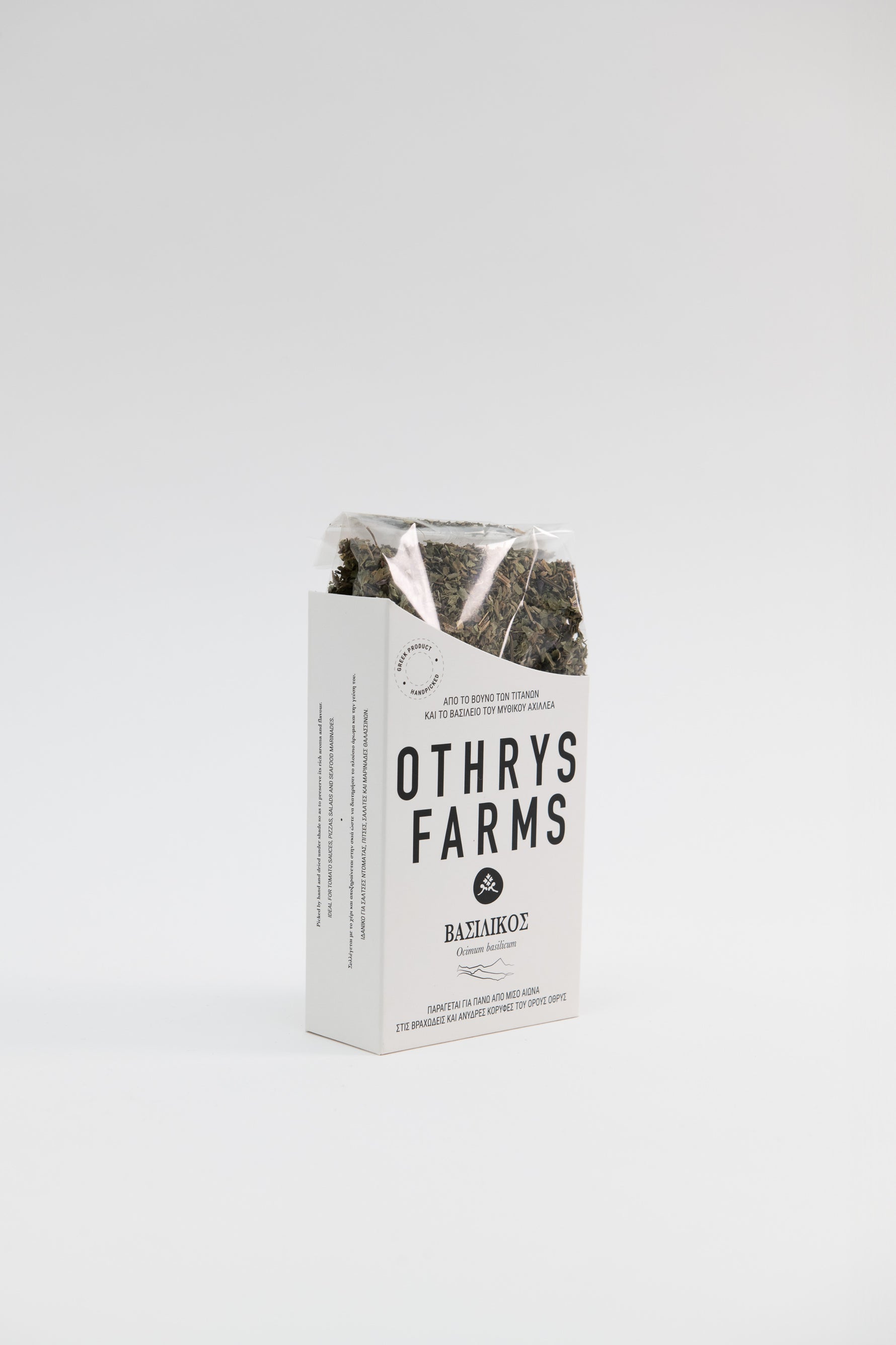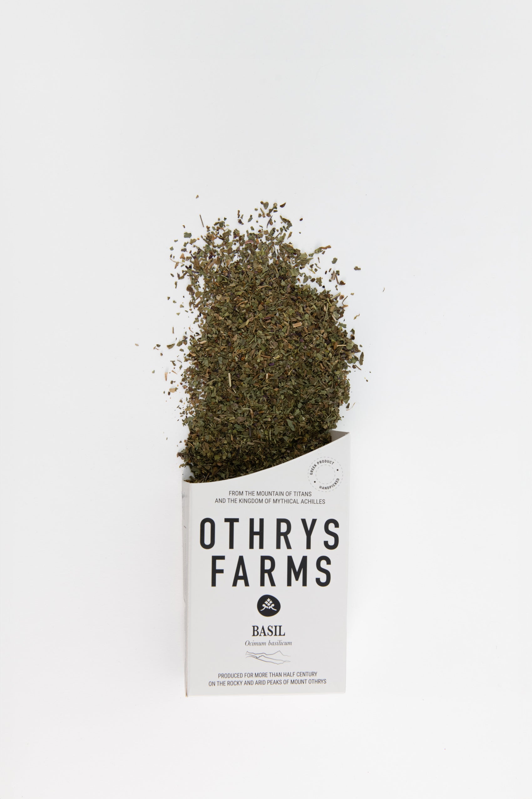 Othrys Farms Basilikum bringt das frische Aroma des heimischen Basilikums – schonend verarbeitet zu fein gerebelten Blättern – naturrein & stielfrei.